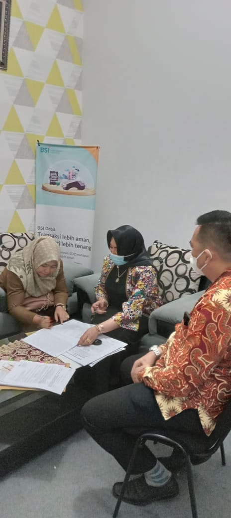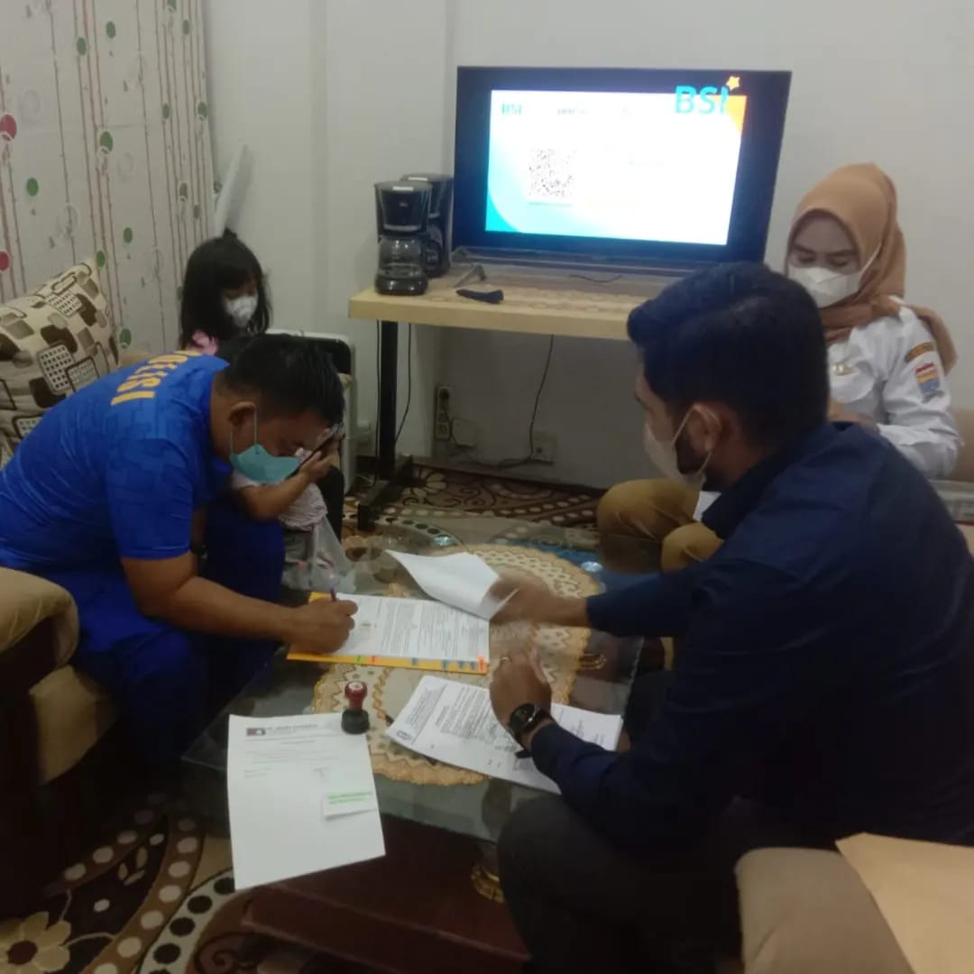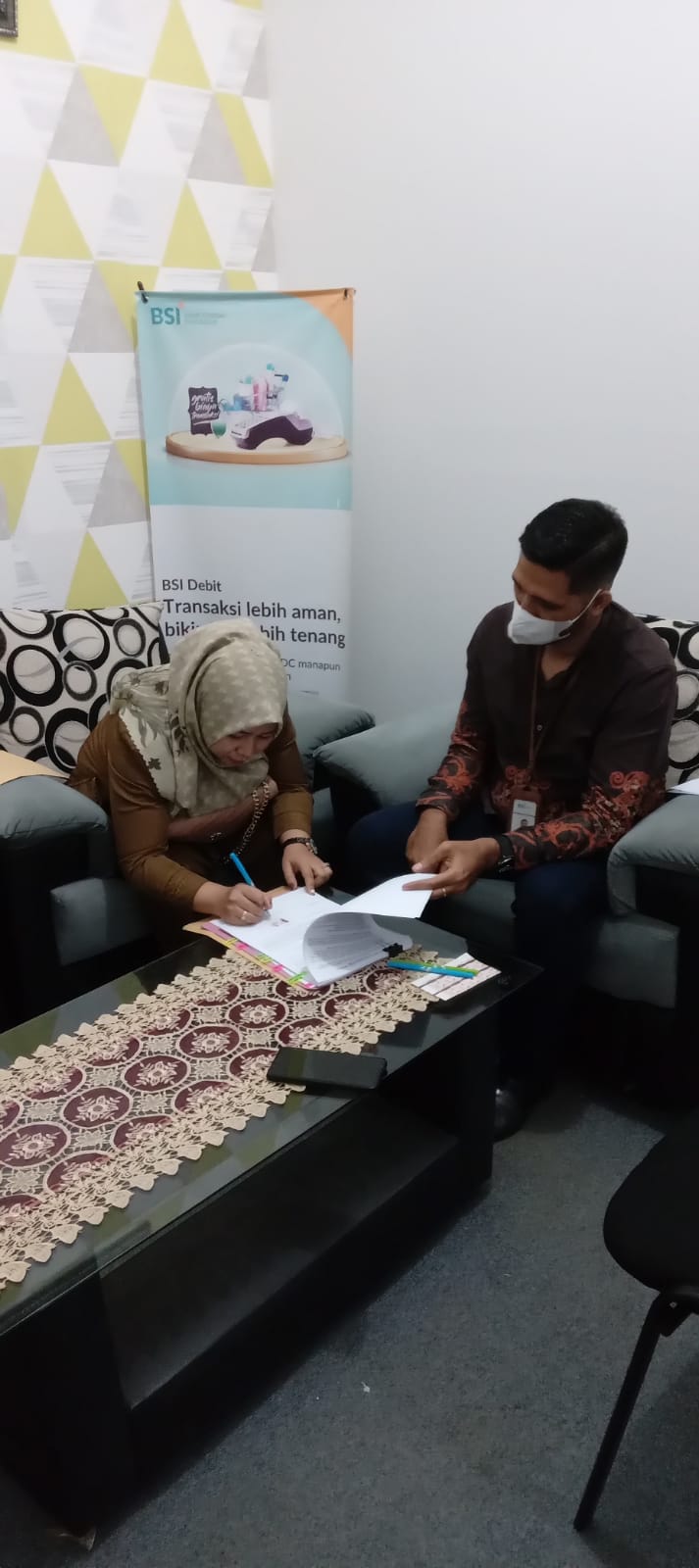 Penandatanganan Akad Kredit dan Akta Jual Beli dan Balik Nama SHM atas pembelian secara KPR rumah blok E-23 di Caledonia Residence a.n Bapak Heri Sofian di Bank Syariah Indonesia.